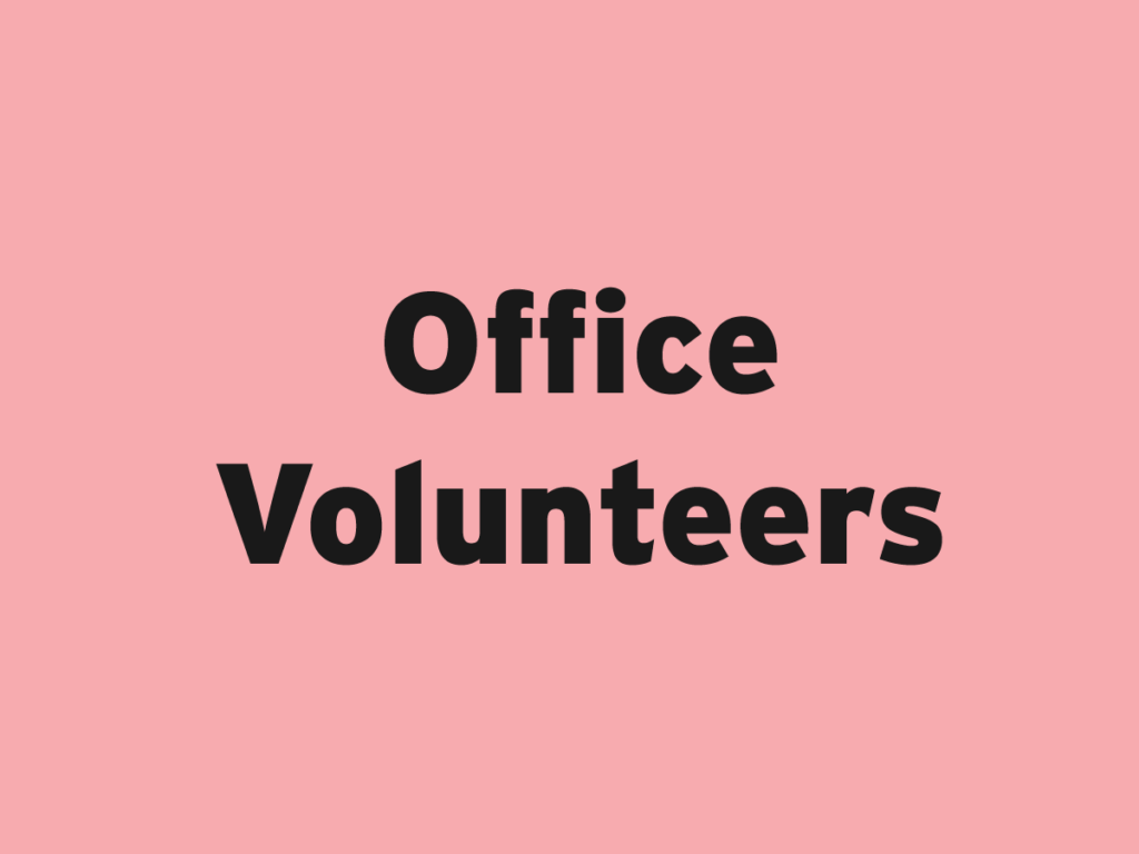 Our church does a lot and the office supports the work of that all. Our office volunteers come in and offer their time and skills. They could be doing anything, from admin to graphic design or IT work to event management.